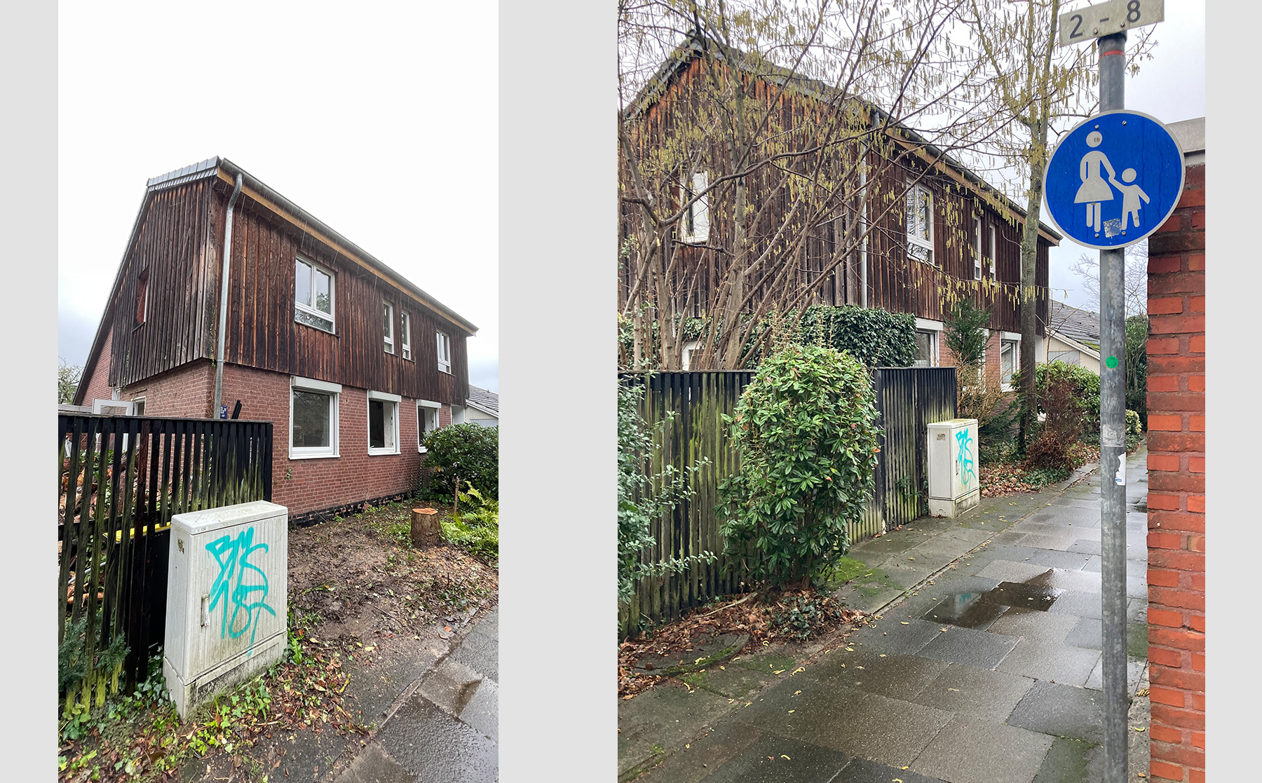 Das 1959 erbaute und in den 1990ern aufgestockte Reihenhaus im Stadtteil Badenstedt wurde umfassend saniert, an heutige Wohnbedürfnisse angepasst und energetisch ertüchtigt. Das Wohnhaus ist Teil eines größeren, noch weitgehend homogenen Gebäudeensembles und markiert als südlicher Kopfbau den Abschluss einer Zeile aus vier bungalowartigen Reihenhäusern.