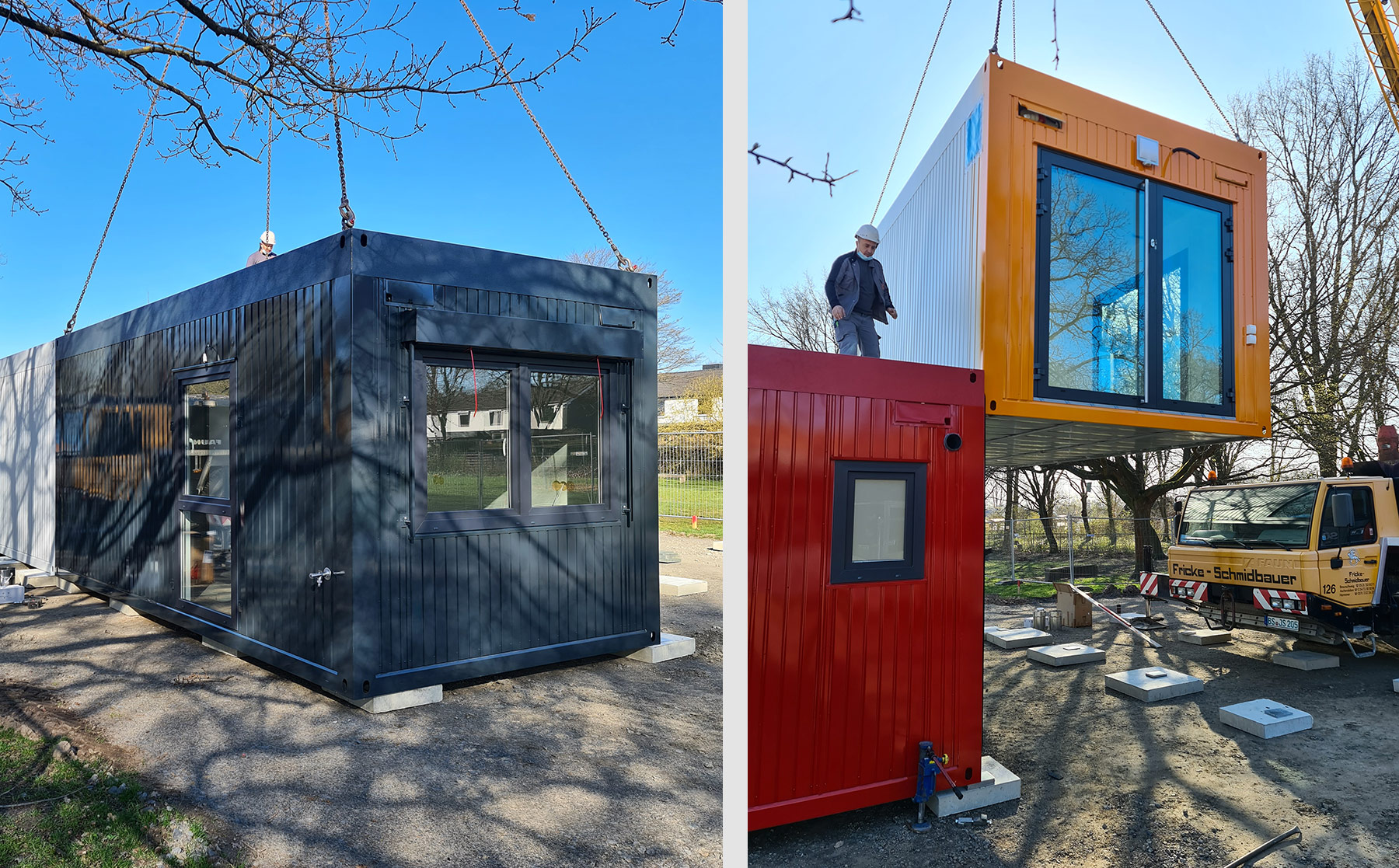 In den Osterferien wird auf der Schulwiese eine Containeranlage für die U3-Gruppe errichtet.